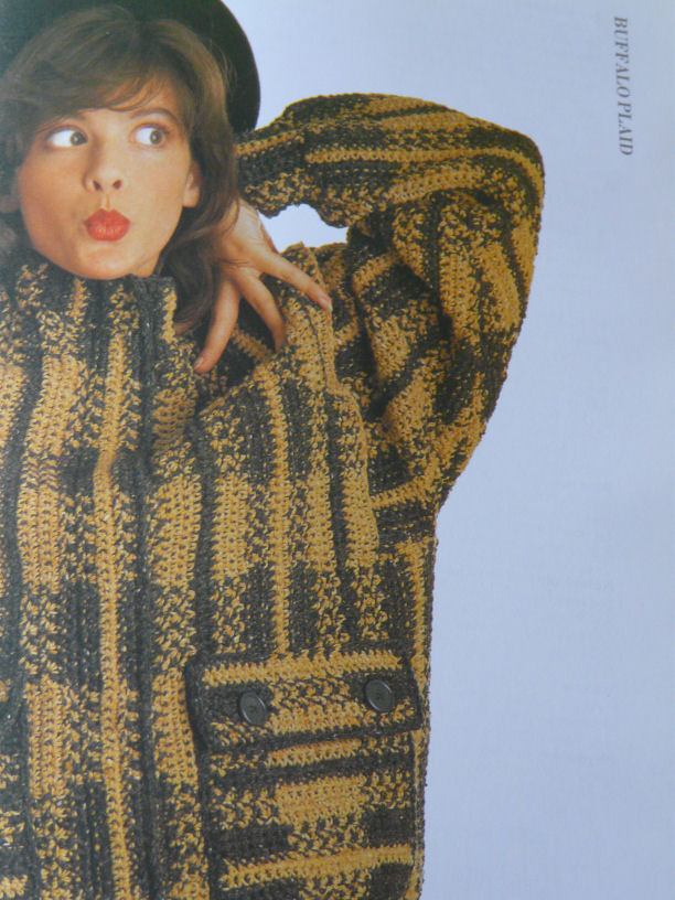 Plaid!, this word even sounds awful. I really can remember my dad wearing something very similar at the time in Blue and black with a leather part attached to the crochet! (knit) what ever. Very 80's