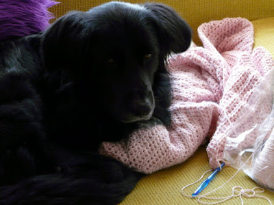 Evie's beautiful pink alpaca and a mixed blend 1st bed, blanket finally completed.