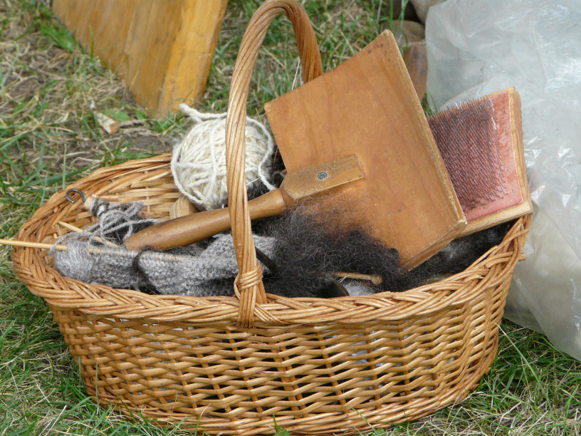 To my delight a basket of knitting, I was considering offering to help demonstrate but with the temp in the high 80's I decided not to.
